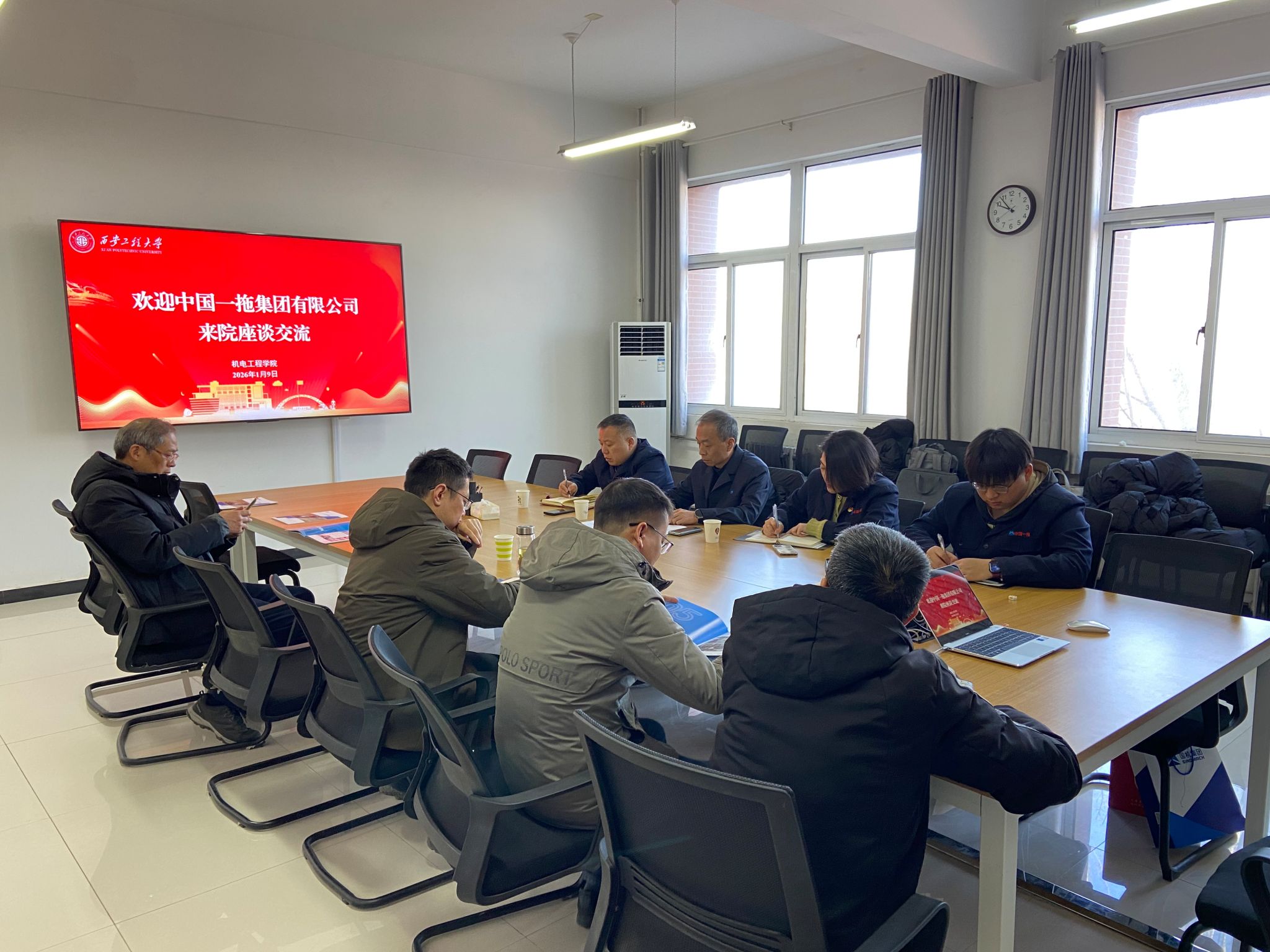 2026年1月9日,中国一拖集团有限公司现代生活中心副总经理汪洋一行4人到访m88help center,双方就深化产教融合、加强校企合作进行了座谈交流。m88help center副院长(主持工作)肖渊及各相关专业负责人参加活动。